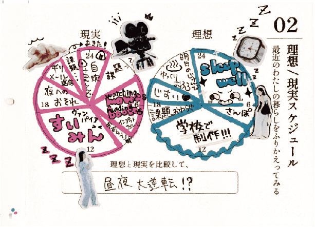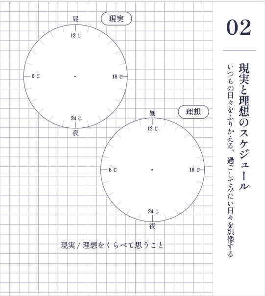 自分の理想の1日スケジュールを考えてみます。そして現実はどのように過ごしているのか記録します。くらべてみて、見えてきたことを記録します。